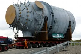 However the largest single movement by road was the Gassifier measuring 9.9 metres wide, 11.8 meters high and 33 metres in length with a gross vehicle weight in excess of 300 tons.
