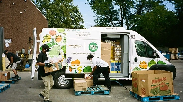 Whole Foods Market donated the funds to purchase 19 refrigerated vans, and upcycled two refrigerated catering vans, to community-based food rescue and redistribution programs to transport both perishable and nonperishable food to communities within 18 markets across the U.S. and Canada. The vans provide recipient organizations with 20,000 pounds of rescued food per week per vehicle, donated from Whole Foods Market and surrounding grocers and retailers, which equates to 182 million meals provided over the anticipated 10-year lifetime use of each van.