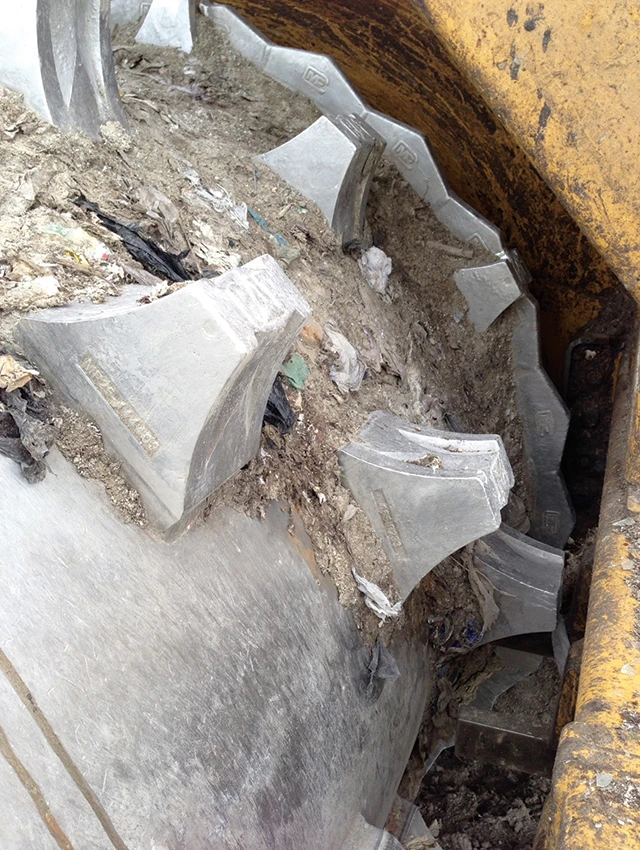 “We have developed teeth specific to machine size, weight, and horsepower,” explains Jim Caron, who adds that both teeth and wheels are designed to meet site-specific requirements. “Our wheels are made with different size teeth and incorporate patterns to adapt to the job conditions, including weather, the composition of the waste—i.e., the percentage of municipal solid waste, sludge, construction and demolition materials, and soil conditions from rock, sand, and loam to cohesive clays.” He says that the height of each tooth, as compared with O.E.M. designs, which are shorter and smaller, and the metallurgy to achieve higher wear life, are additional factors that are important.