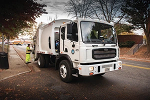 A recent development is the expanded use of Class 7 (which includes fuel trucks, heavy-duty garbage trucks, dump trucks, and beverage delivery) collection trucks instead of traditional Class 6 trucks (which includes dump trucks, garbage trucks, and concrete trucks). Class 6 is a medium truck with a 19,500-to 26,000-pound capacity (average 23,000 pounds). Class 6 waste management trucks tend to have both lower gross vehicle weight and tare weight and come equipped with three axles. Class 7, the next size up, has a capacity from 26,000 to 33,000 pounds (average 29,500 pounds) and requires a Class-B commercial driver’s license (CDL). The heavier-duty Class 7 has both greater GVW and tare weight and is serviced by four axles. Aside from the volume and weight efficiencies inherent in the larger vehicle, their use requires modifications in collection and transport procedures, especially in residential areas. Still, the incremental increase in the use of larger and more efficient trucks with a higher payload-to-cost ratio represents a significant continuous improvement.