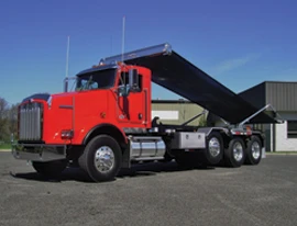 “The industry utilizes a number of trailer configurations including closed and open top ejector-type, tipping platform, and moving floor designs, and can operate in varied terrain conditions,” he says. “In assessing an application, we work to achieve the right balance between ride quality, roll stiffness, articulation, load characteristics and serviceability. Freightliner Trucks offers a number of multi-leaf spring, air ride, rubber-bolster and walking-beam rear suspensions to meet any application as well as standard and wide-track rear axles.”