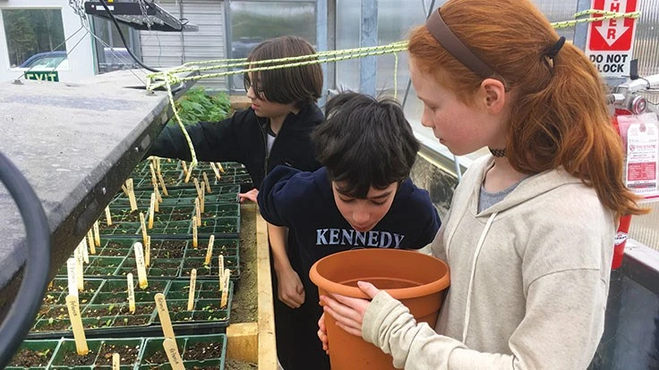 “We came up with experiments in class,” Hoyt says, "[like] if plants grow better in compact soil or loose soil. In science and math curriculum, we use videos and data from the greenhouse.”