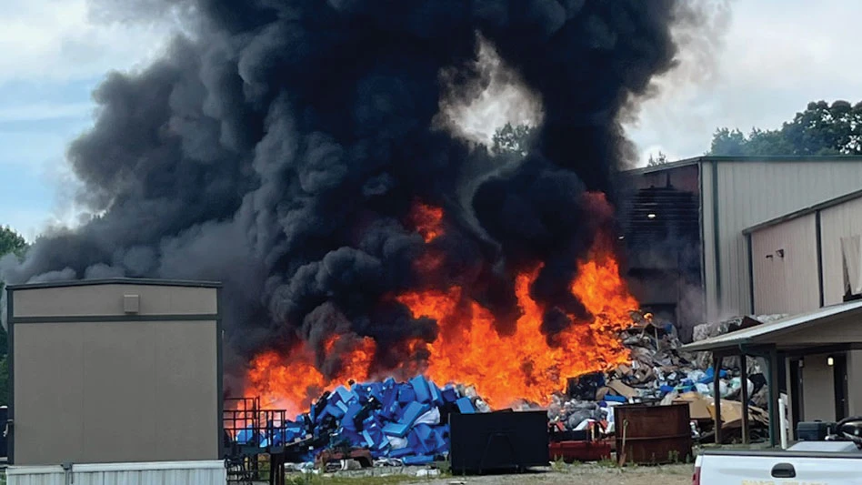 More than 5,000 fires are estimated to occur annually at recycling facilities, according to a new report from the National Waste & Recycling Association, Arlington, Virginia, and Resource Recycling Systems, an Ann Arbor, Michigan- based environmental consulting firm. Material recovery facilities (MRFs) increasingly experience catastrophic fires because of lithium-ion batteries that erroneously are placed in recyclables collected from households. As lithium-ion battery usage grows, so will the risk of fires, the report says.