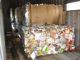 At the Recycling Center of Ottumwa in Iowa, a number of items come in to the facility through curbside collection and dropoff, including corrugated cardboard, box board, magazines, catalogs, telephone directories, newspaper, office paper, tin cans, empty aerosol cans, plastic with a neck, glass bowls and jars, automotive batteries, tires, scrap metal, and appliances.