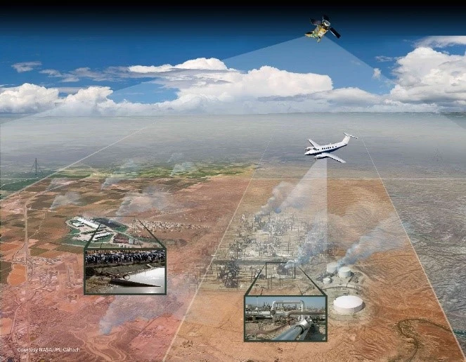 The following NASA/JPL diagram illustrates the three-tiered observation system utilized for methane: