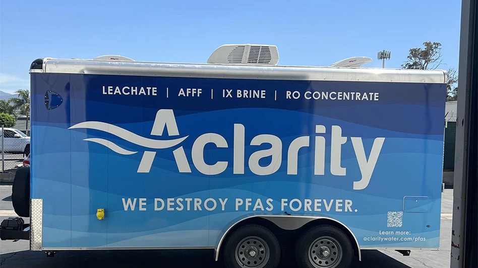 Third party lab results using standard American Society for Testing and Materials (ASTM) method D7979 confirmed Aclarity destroyed PFAS compounds in landfill leachate continuously at a centralized waste treatment facility at levels of greater than 1,000 nanograms per liter (ng/L) to below 10 ng/L, the company says. The equipment operated continuously for four weeks while using little energy.
