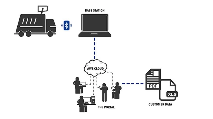 BinMaxx Cloud is a weigh-in-motion scale with arm mounted sensors. It comes with a Bluetooth transmitter that uploads daily lift data to the provided base station upon a vehicle’s return to the yard. Once the upload is complete, data is stored in the cloud and can be accessed through the user portal from any computer or smart device.