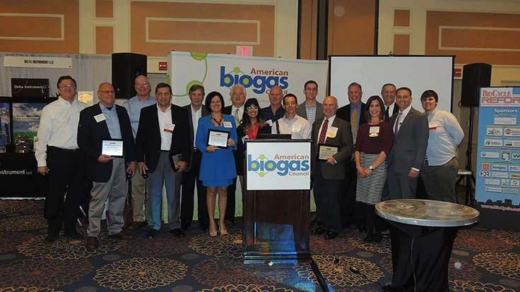 The American Biogas Council (ABC), Washington, recognized 12 organizations for their leadership and innovation, which are helping to strengthen and grow the U.S. biogas industry during its annual conference in Boston. The award recipients were honored during the 2015 Biogas Industry Awards Reception held during BioCycle REFOR15 Conference and Expo. This year, the ABC recognized biogas industry leadership and innovation with three awards: Innovation of the Year, Project of the Year and the new Outside-the-Box award.