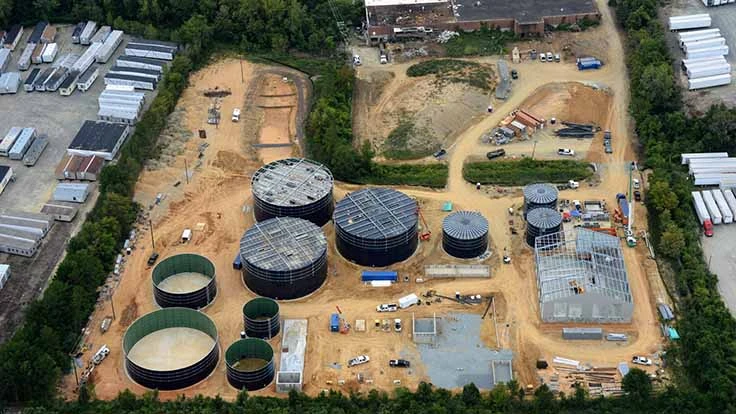 As of early November 2015, installation of the anaerobic digesters, biopulper and wastewater treatment tanks have begun at the Charlotte facility, Blue Sphere says. All major equipment, including the 1.2-megawatt combined head and power units (CHP)s have been delivered to the site, the reception building is nearing completion and commercial operations are scheduled to begin in 2015.