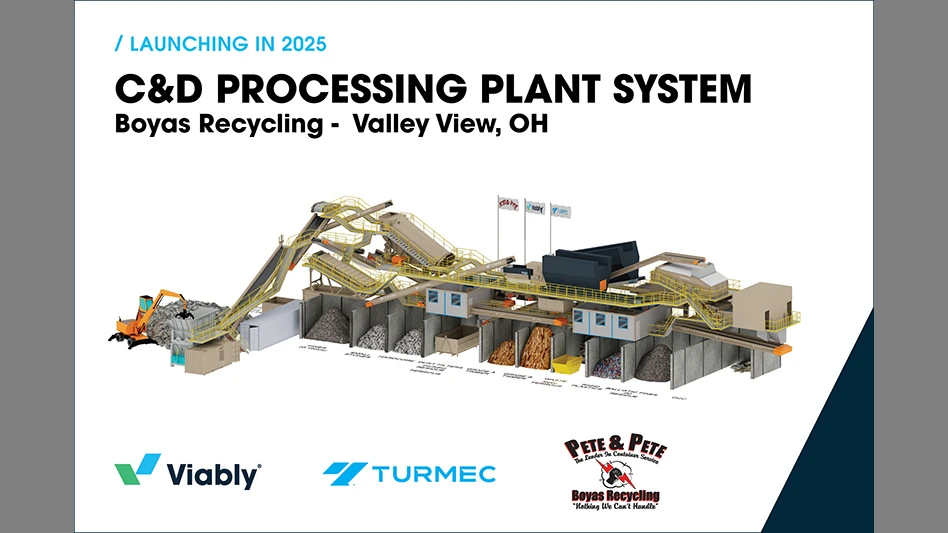 Equipment and technology providers Viably LLC (formerly Komptech Americas) and Turmec say they are working in partnership to assist Boyas Recycling, Valley View, Ohio, to develop and install a mixed construction and demolition (C&D) materials sorting plant.