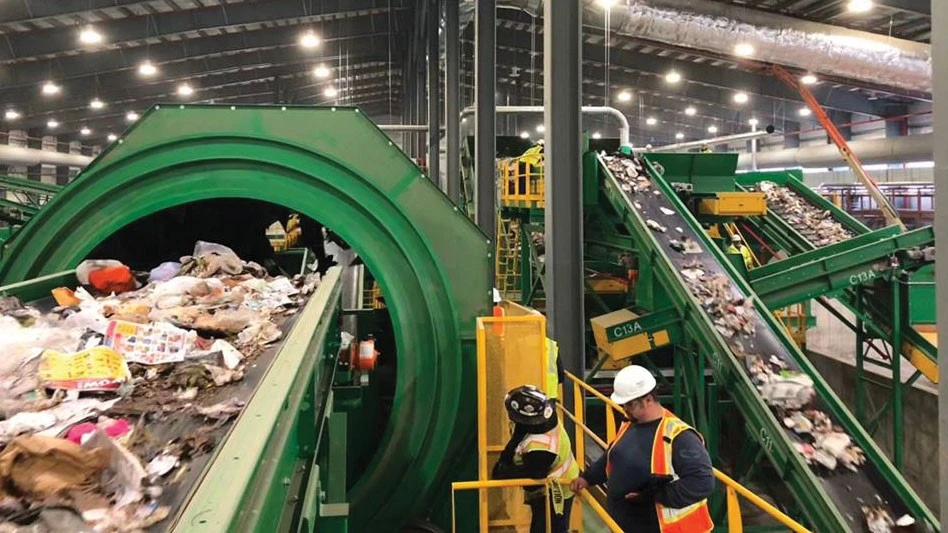 An MRC overview of the facility says it was the first U.S. recycling facility with an integrated pulper that can process items such as dirty paper plates, coffee cups and pizza boxes in addition to more routine recyclables. The facility is capable of diverting from landfill 60 percent to 80 percent of the material it receives.