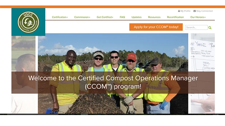 The Certification Commission of the United States Composting Council (USCC) has expanded the customer experience online system to manage the growth and operations of its first nationally recognized professional compost credential, the Certified Compost Operations Manager (CCOM).