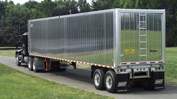 The new lightweight tipper trailer still maintains its double-wall construction on its East Genesis smooth-sided design with the floor-to-wall attachment system. The outboard Genesis design is made to provide more capacity than traditional external post trailers.