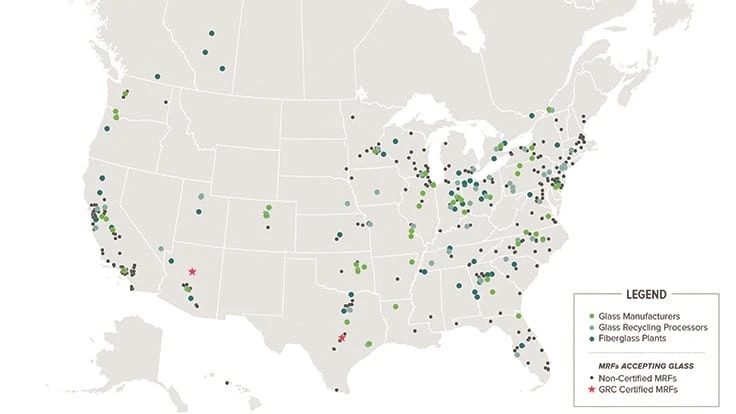 Certified MRFs are spotlighted on the GRC’s glass market map, making it easy for cullet buyers to see sources for quality cullet.