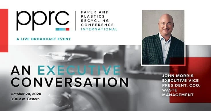 The Recycling Today Media Group has tabbed John Morris of Waste Management for the keynote session at this year’s Paper & Plastics Recycling Conference International. The three-day broadcast event will air Oct. 20-22 from 8 a.m. to noon eastern.
