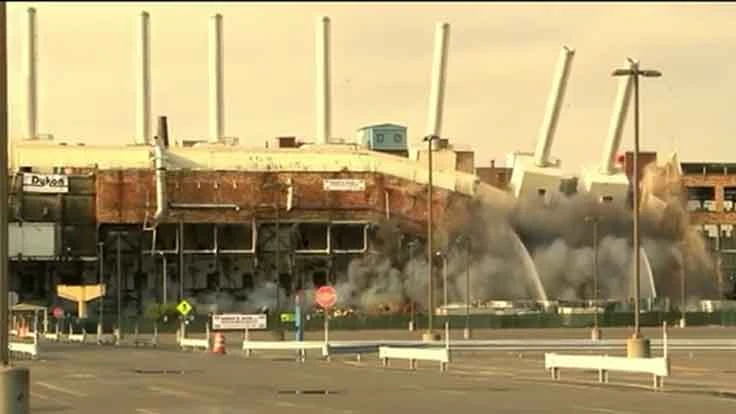 One-hundred pounds of dynamite took down 1,500 tons of concrete and steel in just 18 seconds, local reports say.