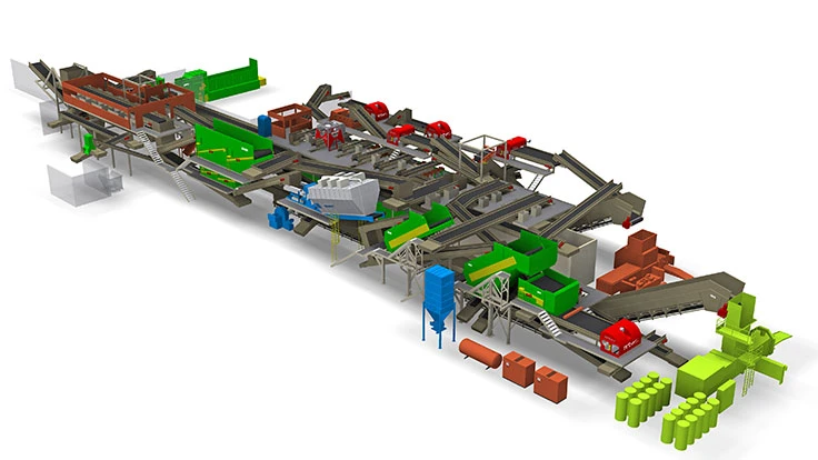 The latest AI, robotic and fiber optical technologies add to BHS’ mixed waste recovery capabilities, a patented process that has been implemented throughout the world including at several operational facilities in California. The process includes BHS metering and bag opening technologies, Tri-Disc screens, Nihot air density classification and NRT In-Flight Sorting optical technology. The PHMRF design includes the built-in flexibility to run several material types on the same line, from dry single-stream recyclables to organics-rich MSW at high rates of throughput, recovery and uptime, according to BHS.