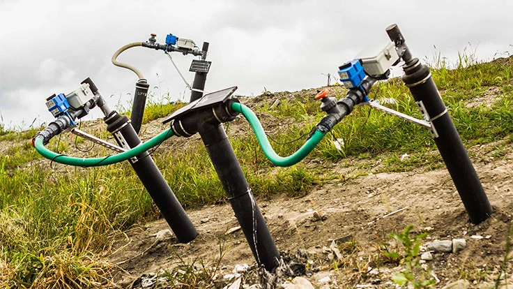 Loci has three devices in their line of smart wellheads; The Controller, Sentry and Guardian. Each device is able to continuously monitor the extraction pressure, temperature and the oxygen content of the collected landfill gas, allowing users to monitor gas production in real time. This information is required to ensure the gas capture and collection system (GCCS) is being operated effectively and efficiently. The Sentry and Controller devices have additional monitoring and control capabilities that allow the WellWatcher system to optimize energy production from the well field.