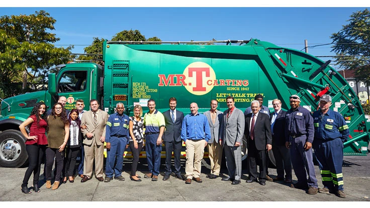 Mr. T Carting is one of the ten oldest family-owned businesses in Queens and one of the six largest private carting companies in New York City, says the company. It is known as an innovator, especially in the area of food waste. With nearly half of its customers in food-related businesses, the company gathers food waste in source separated organic waste disposal and directs it for compost. Mr. T began offering this service in 2006, before it was required to do so.