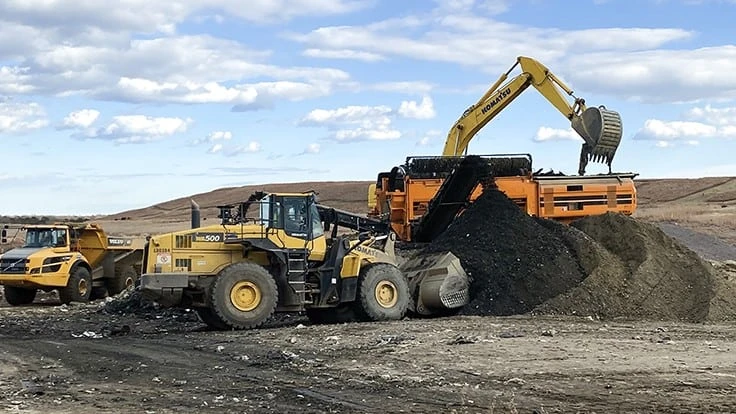 Ocean County ultimately settled on a Doppstadt SM720K trommel screen since the circular rotation was able to better separate the dirt from the waste. Kiesel notes that the company uses an excavator to dig to a depth of around 40 to 45 feet. The excavator then transfers the waste to an off-road end-dump truck so the material can be moved from the area that is being mined to a separate screening station, where another excavator feeds the hopper of the trommel screen. A wheel loader is then used to load the resulting material into off-road end-dump trucks, which transport the 2-inch-minus cover soil and over 2-inch waste materials, respectively, back to the site’s active landfill cell.