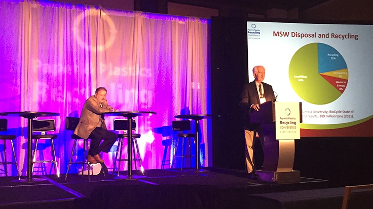 If one thing is certain about the recycling industry, it is constantly changing. In 2003, debate centered mostly around contamination concerns with single-stream recycling, and in 2015 mixed-waste processing is at the forefront of the discussion around quality. But as speakers at the 2015 Paper and Plastics Recycling Conference explained, as state and local governments continue to set high recycling and waste diversion goals, mixed-waste processing is an effective method to achieve those goals.