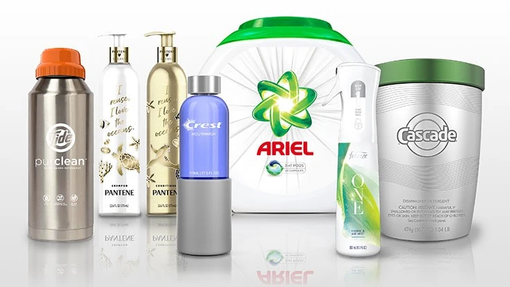 P&G says durable and refillable packaging featuring new features and functionalities is available for its Pantene, Tide, Cascade and Crest brands: