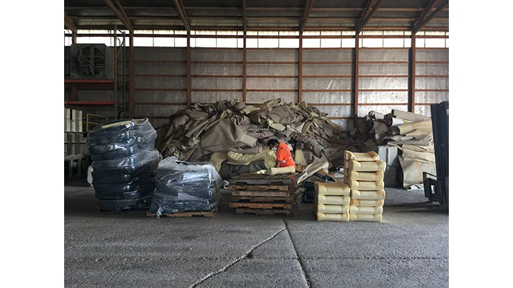 When it’s time to update train cars, the old seats are taken to Atlanta to get disassembled. The cushions go to a carpet recycler in Indianapolis and the leather seats arrive at People for Urban Progress (PUP), an Indianapolis-based nonprofit that recycles materials for urban reuse projects.