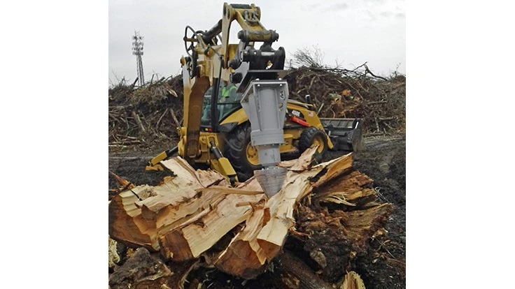 Card had never heard of a cone splitter until a colleague mentioned it. He simply knew that the recycling center needed a tool to downsize logs and stumps to extend the life of its new grinder. Card says he discovered New Jersey-based Ransome Attachments and its Black Splitter product line during an Internet search in late 2017.