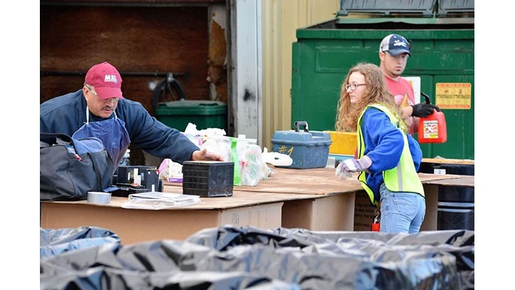 C2 sets up an electronics collection and MXI is there to handle the household hazardous waste. By 8 a..m., a line of cars pull in and volunteers help direct traffic and hand out brochures and reusable shopping bags.