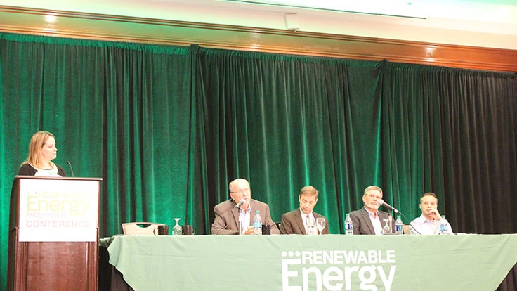 From left to right (L-R): Kristin Smith, editor of Renewable Energy from Waste magazine, acting as moderator; Jim Bohlig of Repower South, Nathan Rich of Wasatch Integrated, Jim Wollshlager of Organix Solutions; and Fanis Tsilionis of Helector S.A.