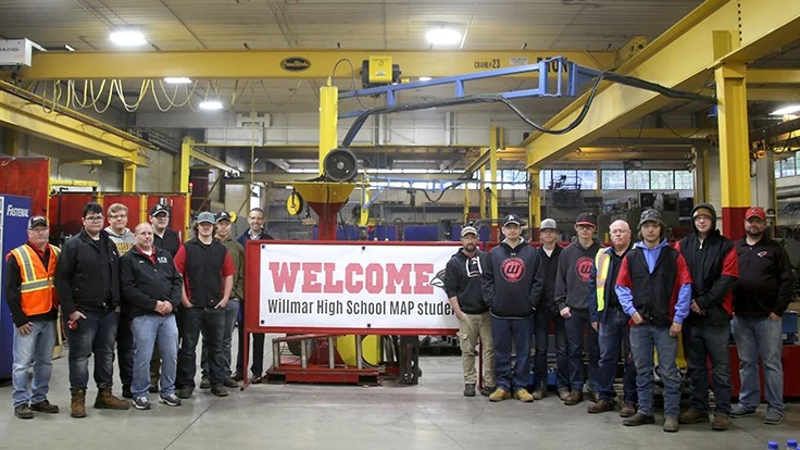 Now in its second year, the Manufacturing and Production (MAP) class from Willmar High School in Minnesota toured the Rotochopper facility as part of the final day of its program with Willmar-based West Central Steel Inc. In addition to ten students enrolled in the class, the group included teachers, staff and business leaders that support the program.