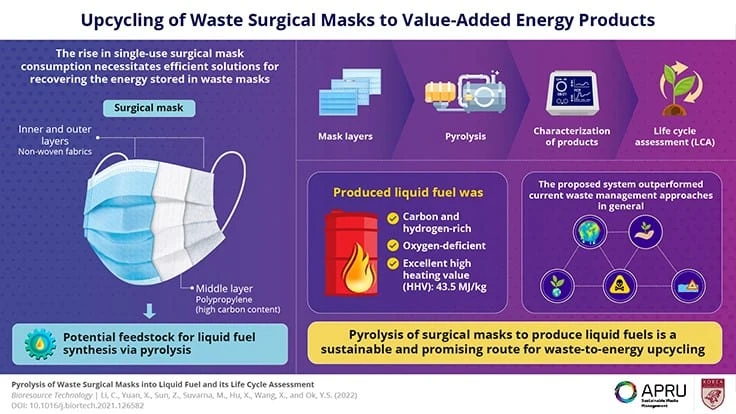 “We verified that upcycling post-consumer surgical masks into value-added energy products represents a sustainable and promising route with notable environmental benefits,” remarks Dr. Yuan.
