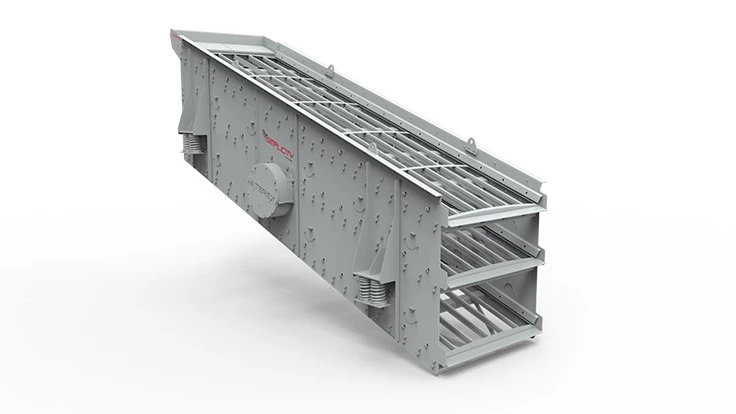 Feed tray and discharge lips are provided with abrasion-resistant liners. The screen box is made of weld-free construction to reduce stress concentration. The screen mechanism consists of a steel eccentric shaft mounted in roller bearings designed for longer bearing life. The stroke can be adjusted as per requirements by changing the counterweights mounted on the flywheels.