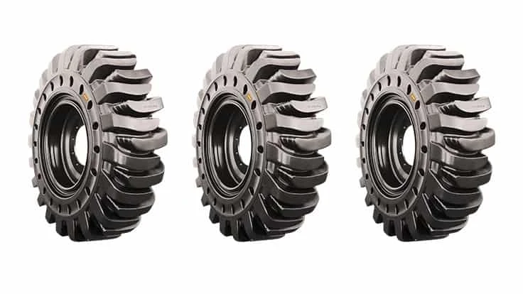 Featuring a wide footprint, Trelleborg’s Comfort line tires are designed to provide better traction compared to standard solid tires. The company says the wide, flat tread design affords excellent stability and extended operating hours, while a deep lug tread design gives three times more wear than a pneumatic tire.