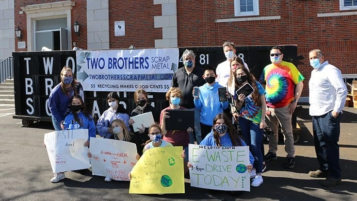 Farmingdale, New York-based Two Brothers Scrap Metal says a drive it conducted in cooperation with an area middle school has resulted in the collection of 7,160 pounds (more than 3.5 tons) of electronic scrap.