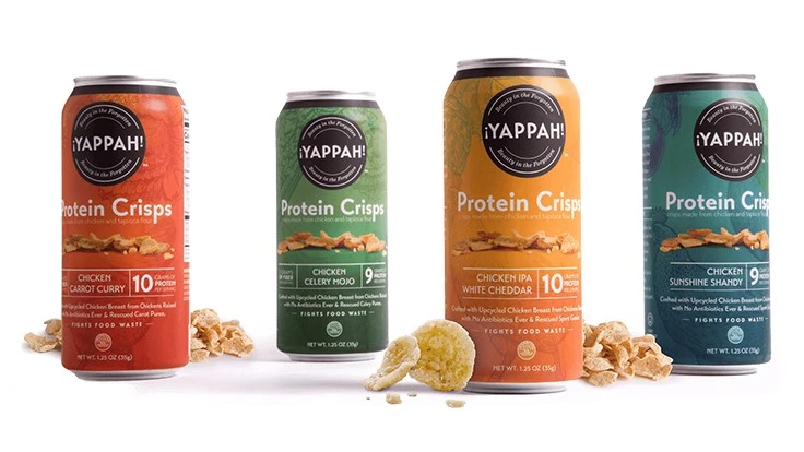 The first product under the ¡Yappah! brand, Protein Crisps, is made from rescued and upcycled vegetable and grain-based ingredients that might otherwise be left behind.