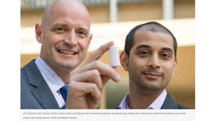 Carbon Upcycling is composed of UCLA professors, students, and staff. The team has formed over the past year to explore new approaches for developing construction materials. Led by five distinguished professors including Gaurav Sant, associate professor and Henry Samueli Fellow in Civil and Environmental Engineering, and J.R. DeShazo, director of the UCLA Luskin Center and professor of Public Policy, Urban Planning and Environmental Engineering, the team has succeeded in developing a new technology which transforms waste carbon dioxide from power plants into a new building material that can replace cement, a material responsible for approximately 5 percent of worldwide CO2 emissions.