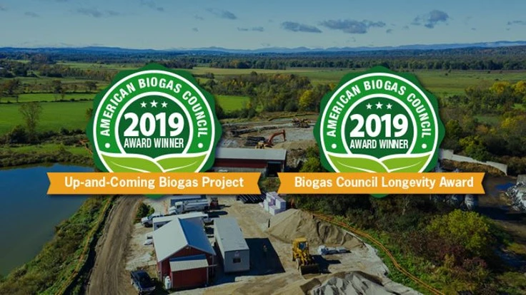 Vanguard Renewables, Wellesley Hills, Massachusetts, and Vermont Gas (VGS), South Burlington, Vermont, announced that they received the 2019 American Biogas Council Up-and-Coming Biogas Project award for their work on the Goodrich Farm anaerobic digester project in Salisbury, Vermont. The American Biogas Council made the announcement at the organization’s awards ceremony Oct. 29.