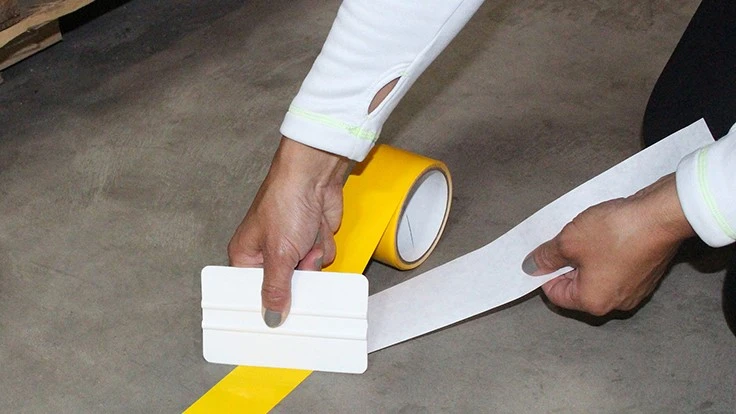 According to the company, Floor-Mark High Performance is durable. Its “high bond” acrylic pressure-sensitive adhesive provides protection, yet it is flexible enough to conform to uneven surfaces. Unlike thicker high-traffic tape products, vehicles have no problem passing over this product’s ultra-low profile (14 mil). The company says Floor-Mark High Performance is also easy to apply—just peel and stick.