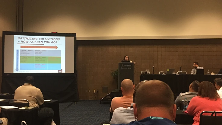 Lisa Skumatz, an economist at Skumatz Economic Research Associates Inc. (SERA), speaks during the session Residential Collection Best Practices at WasteExpo 2017.