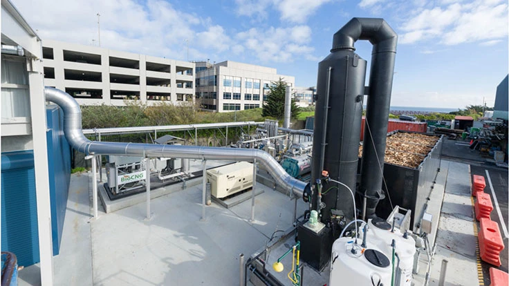 According to the companies, the Blue Line Biogenic CNG facility is the country’s first dry anaerobic digestion (AD) facility that converts biomethane into compressed natural gas (CNG) to fuel the collection vehicles that collected the organic material. This unique closed-loop system transforms 11,200 tons of food and green waste per year into biogenic compressed natural gas (CNG), produces heat to run the operations and provides high-quality compost. The facility can produce up to 120,000 diesel gallon equivalent (DGE) per year of carbon negative biogenic CNG—enough to fuel up to 18 of Blue Line sister company, South San Francisco Scavenger’s collection vehicles.
